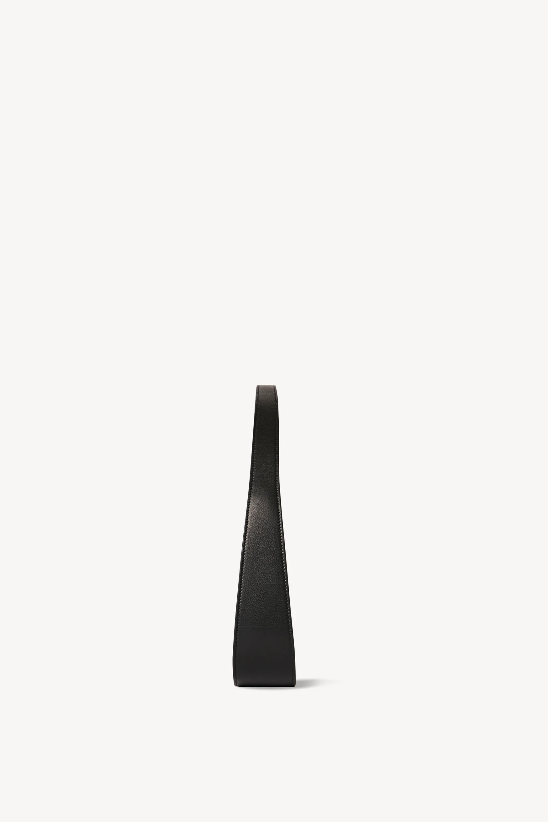 Compact handbag in smooth calfskin leather with curved, sculptural silhouette, flat shoulder strap, and top zipper closure.