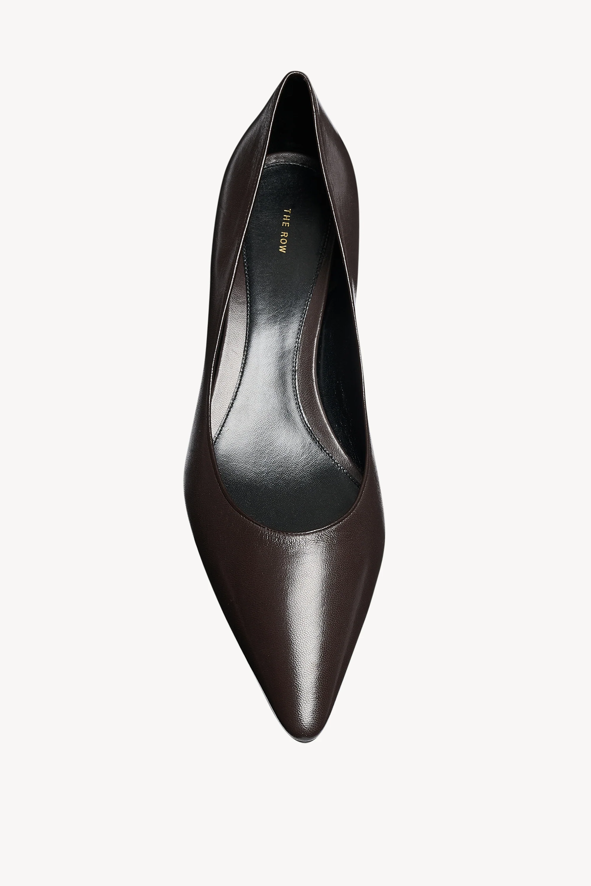 Classic kitten heel in soft lambskin leather with pointed toe and leather sole.